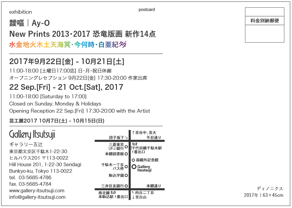 AY-O 靉嘔展「恐竜版画シリーズ14点」「水金地火木土天海冥・今何時・白亜紀多」 |