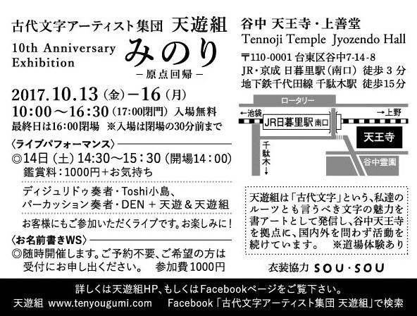 古代文字の魅力を書アートとして発信し、天王寺を拠点に活動中の古代文字アーティスト集団・天遊組。今年は活動を始めて10周年目の区切りの年。メンバーそれぞれが原点に立ち返って古代文字と向き合った作品を展示...